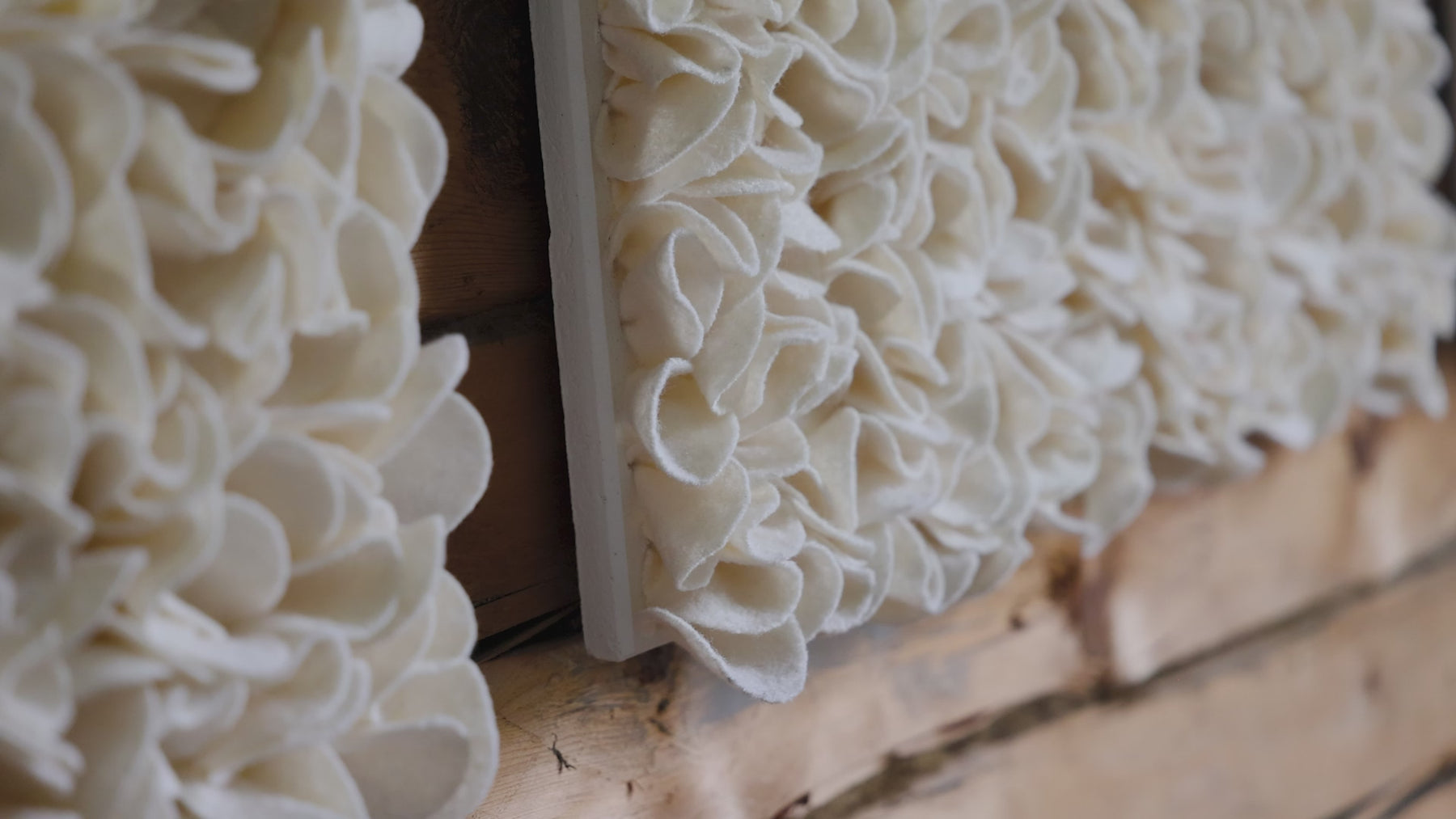 The panel was tested as installed directly against a surface (Type A mounting) with no air gap, mirroring real-life placement and ensuring that its performance remains honest and dependable in use. Crafted from a recycled wool blend and a stone wool acoustic core, the panel holds its form lightly – 1.66 kg – yet performs with remarkable strength, offering a soft, natural hush that deepens the tranquillity of its surroundings.